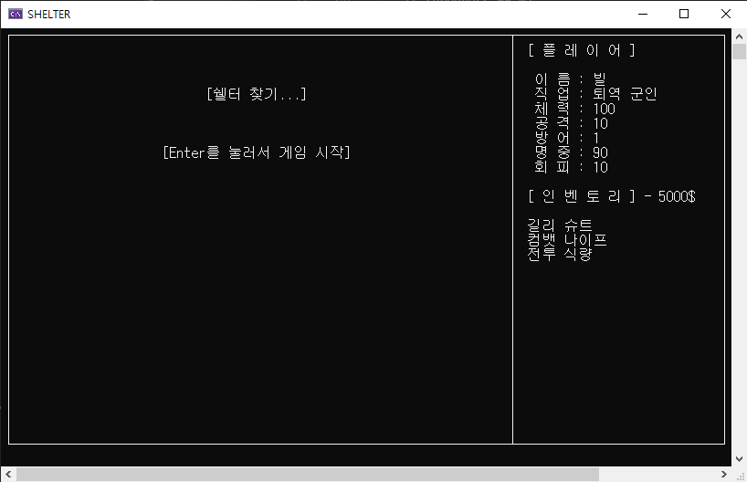 'C# > 텍스트 게임 "Shelter"' 카테고리의 다른 글