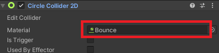 - 물리 머티리얼 2D를 생성해 공의 머터리얼 값에 부여