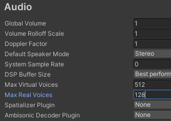 그러면 단순 개수를 늘려서 문제를 해결하면 끝인가? 유니티에 허용하는 최대치는 255개이고 가상음성은 4095개까지 늘릴 수 있다.